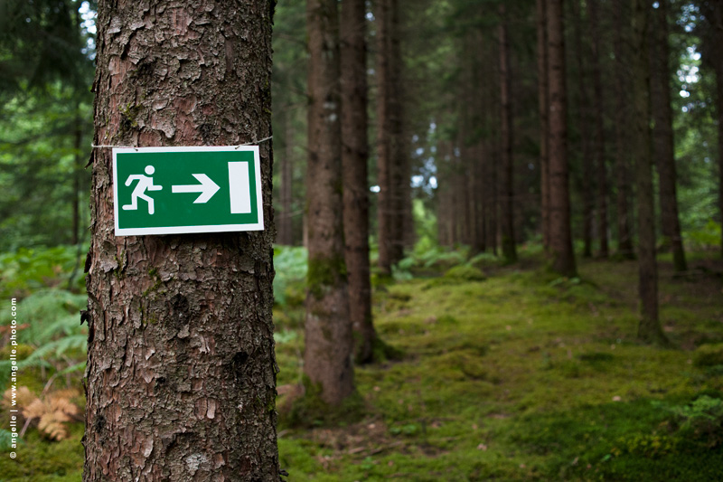photo © angelle-foret-panneau sortie de secours allee de douglas insolite