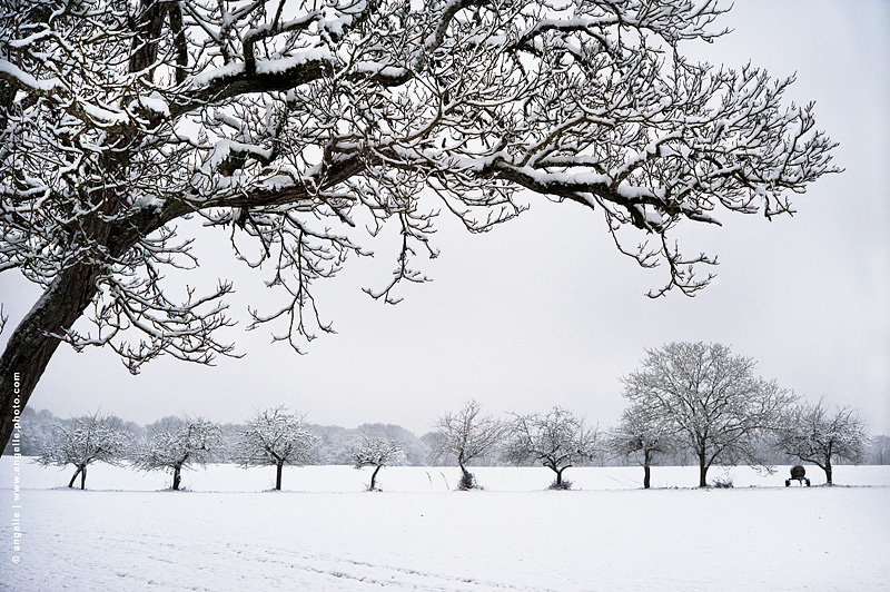 photo © angelle arbre neige pré alignement ligne silhouette citerne graphique