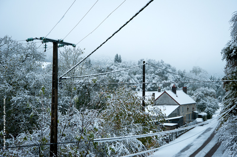 photo  © angelle matin neige cable poteau campagne route paysage fenetre