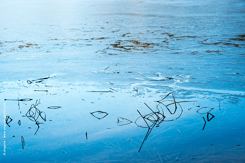 photo © angelle lac glace morvan herbe geometrie douceur bleu soir reflets paisible